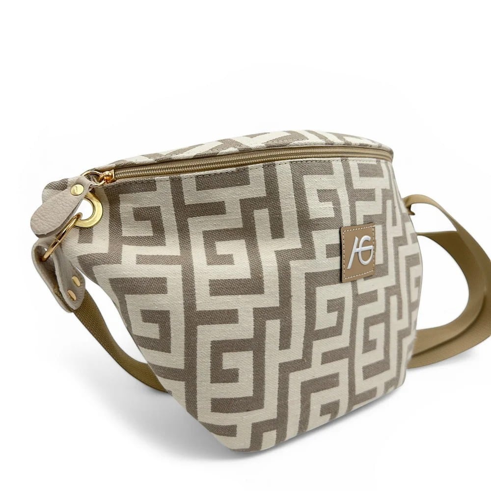 Χειροποίητη Γυναικεία Τσάντα μεσης Ari Giorgio Ελληνικής κατασκευής από ύφασμα με μπεζ