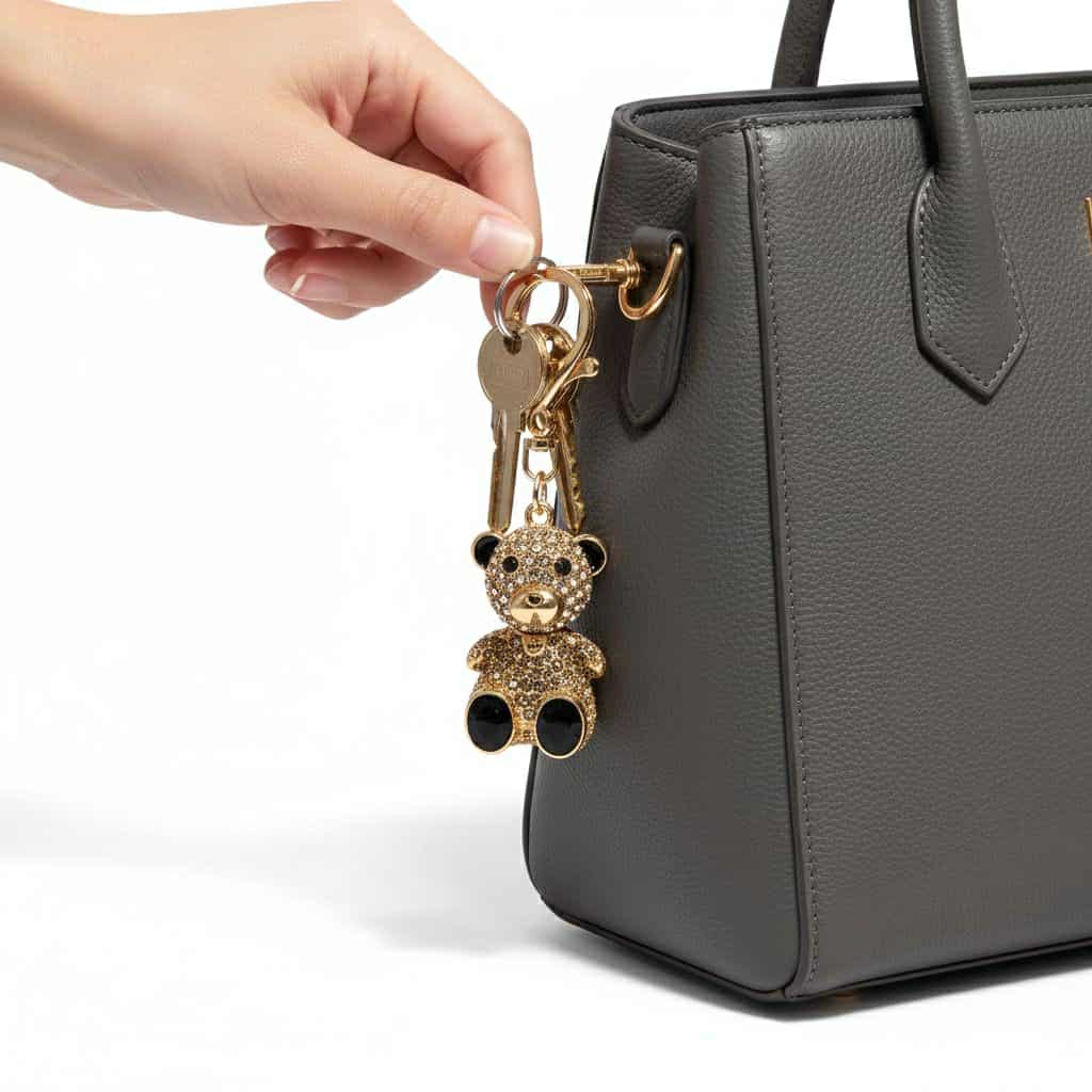 Παιδικό μπρελόκ σε σχήμα αρκουδάκι με στρας και μεταλλικό κρίκο σε μαύρο χρώμα είναι η ιδανική επιλογή για εσάς και για δωρο.