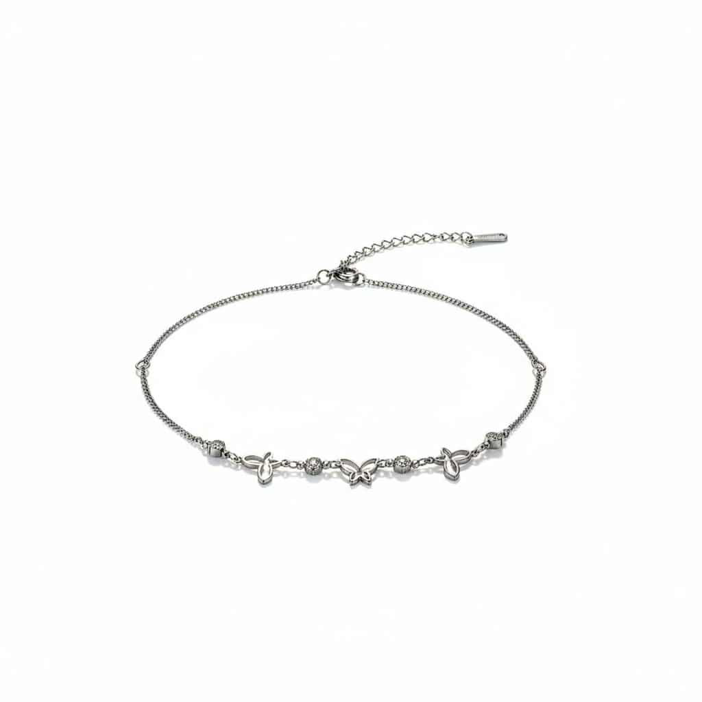 Γυναικείο βραχιόλι ποδιού εντυπωσιάζει με το μοναδικό του σχέδιο ,κατασκευασμένο από ατσάλι. Έχει κομψό και λεπτό design που προσδίδει μία ρομαντική και θηλυκή αίσθηση σε κάθε σας εμφάνιση.