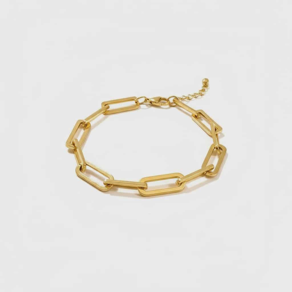 Αυτό το βραχιόλι συνδυάζει την κομψότητα με τη μοντέρνα αισθητική, ιδανικό για κάθε περίσταση. Κατασκευασμένο από ποιοτικό ατσάλι, το βραχιόλι είναι ανθεκτικό και προσφέρει μακροχρόνια χρήση. Η επιχρύσωσή του προσθέτει μια αίσθηση πολυτέλειας, ενώ το κίτρινο χρώμα του τονίζει τη λάμψη του.