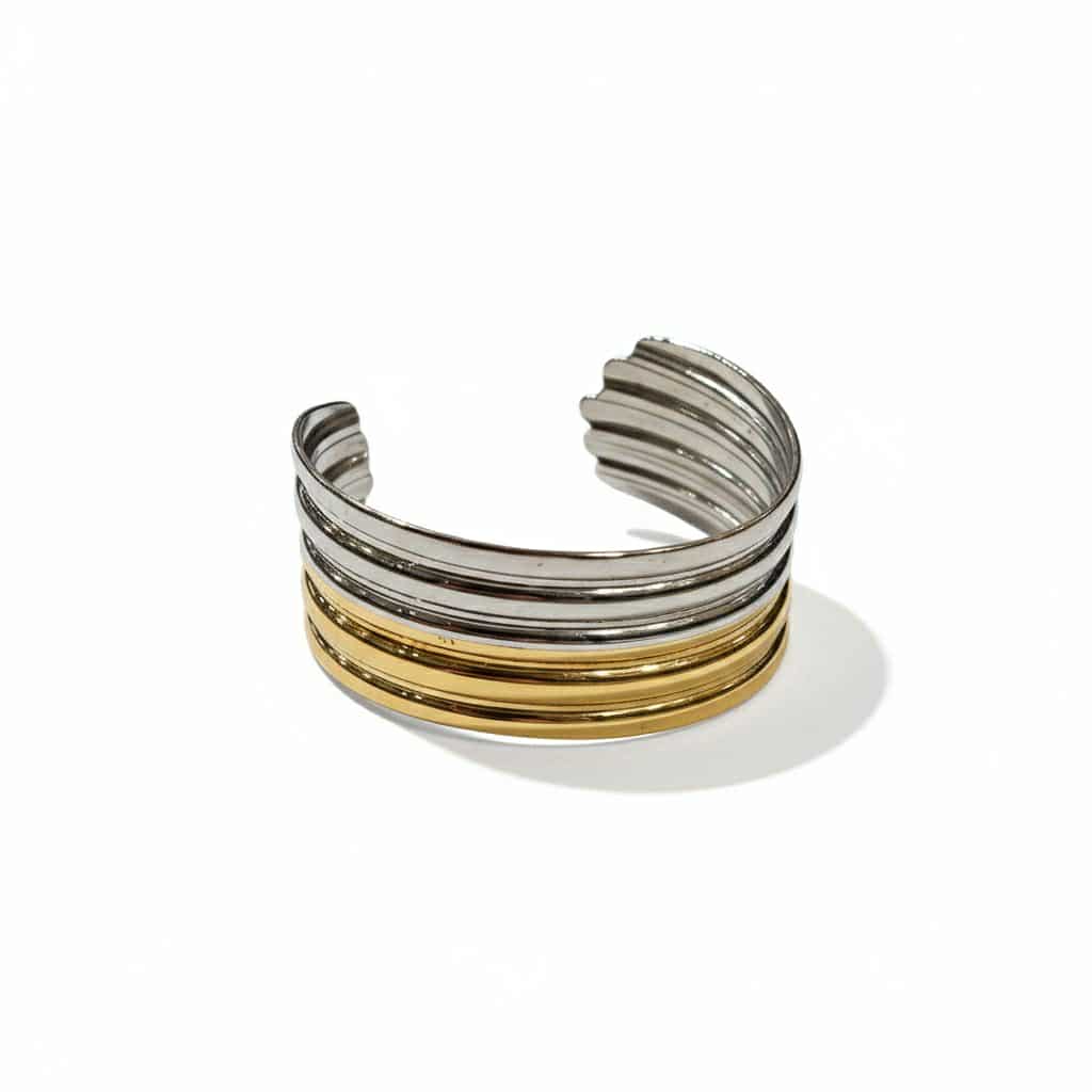 Βραχιόλι-cuff ατσάλινο σε χρυσό και ασημί χρώμα.
