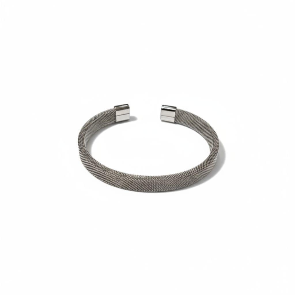 Βραχιόλι χειροπέδα σε ασημί χρώμα.