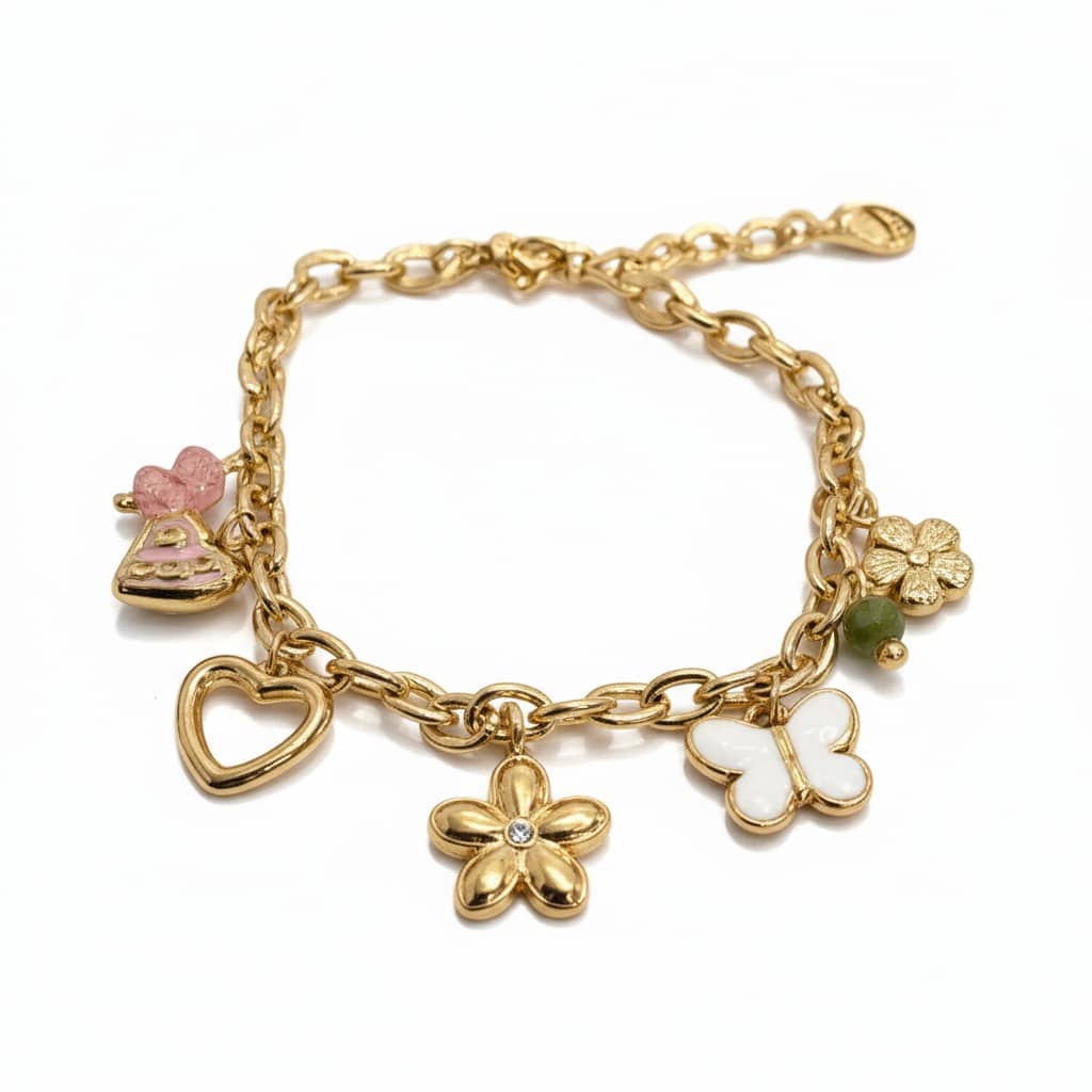 Αυτό το βραχιόλι συνδυάζει την κομψότητα με τη μοντέρνα αισθητική, ιδανικό για κάθε περίσταση. Κατασκευασμένο από ποιοτικό ατσάλι, το βραχιόλι είναι ανθεκτικό και προσθέτει μία ξεχωριστή πινελιά στο στυλ σου! Τα σχέδια που είναι κρεμαστά προσθέτουν μία ρομαντική διάσταση, κάνοντάς το ιδανικό για κάθε περίσταση. Είναι μια εξαιρετική επιλογή για τις γυναίκες που επιθυμούν να ενισχύσουν την εμφάνισή τους με ένα κομμάτι που αποπνέει αγάπη και ζωντάνια.