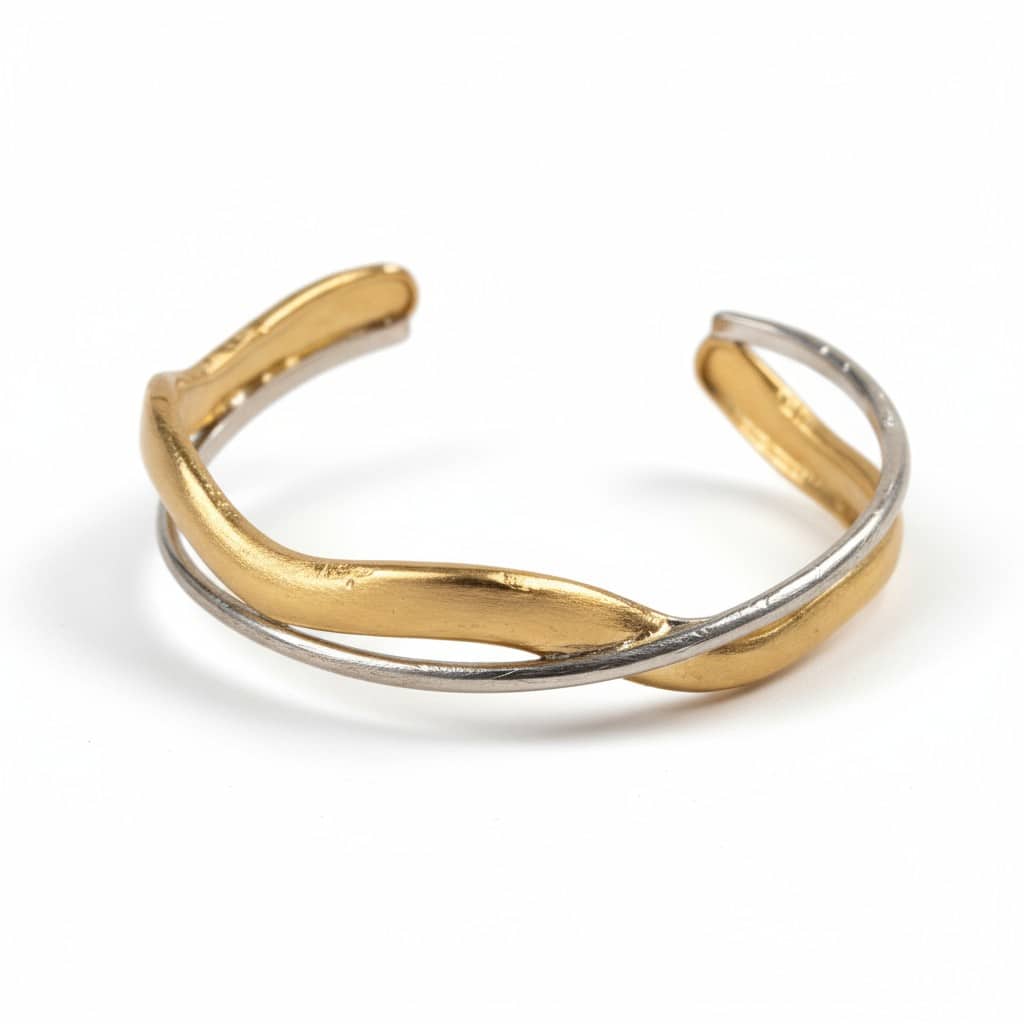 Βραχιόλι-cuff ατσάλινο σε χρυσό και ασημί χρώμα.