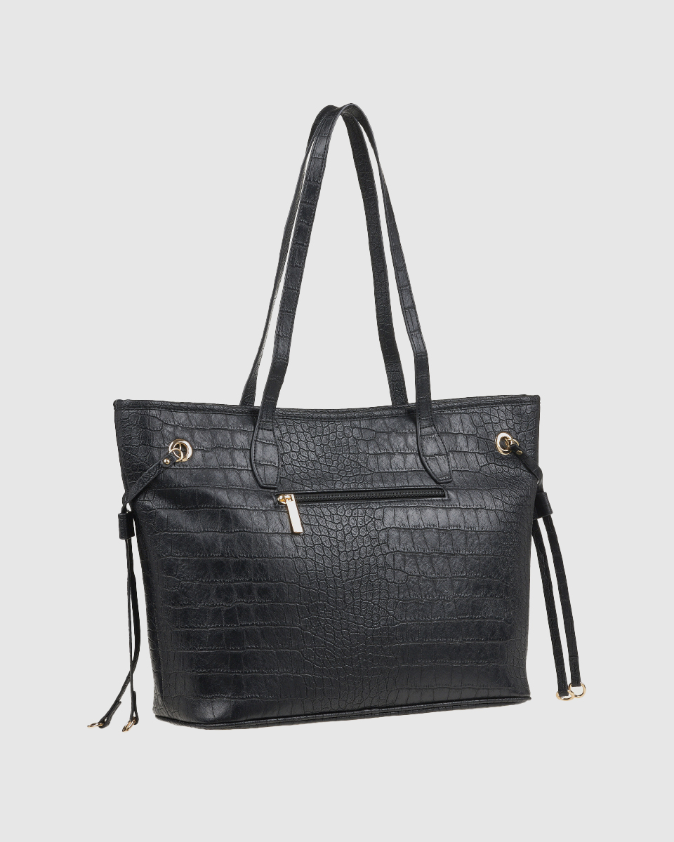 Η κομψότητα της croco υφής συναντά τη λειτουργικότητα στην τσάντα ώμου Verde. Με μοντέρνο σχεδιασμό, χρυσές λεπτομέρειες και πρακτικό εσωτερικό, προσφέρει ιδανική επιλογή για κάθε περίσταση – από το πρωινό γραφείο έως την απογευματινή έξοδο.