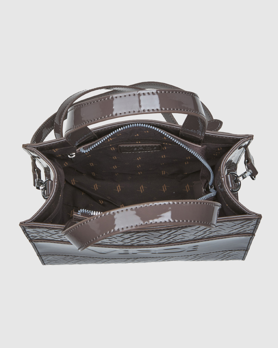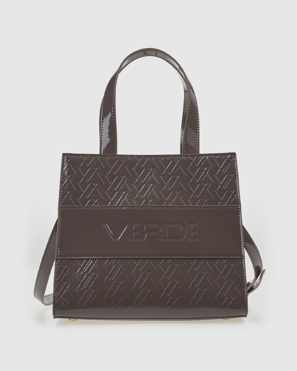 Με μια εντυπωσιακή λάμψη και ανάγλυφο λογότυπο, η γυναικεία τσάντα χειρός Verde συνδυάζει την κομψότητα με τη μοντέρνα αισθητική. Το βερνικωμένο της φινίρισμα την καθιστά ιδανική για statement εμφανίσεις, ενώ η ευρύχωρη εσωτερική της διάταξη εξασφαλίζει πρακτικότητα για κάθε περίσταση.